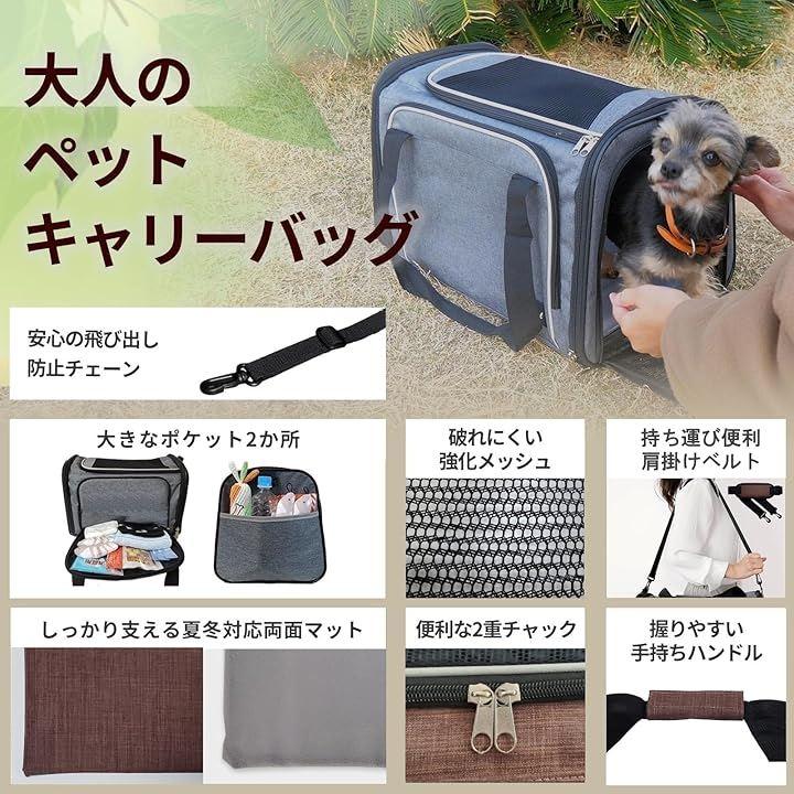 「大きな出入口2箇所」大きな出入口が2箇所の 犬 猫 キャリーバッグ。
