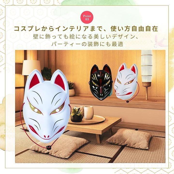 和風テイストで特別感を演出:狐の面は伝統的な日本文化の象徴でありながら、現代風のスタイリッシュなアレンジも加えられています。
