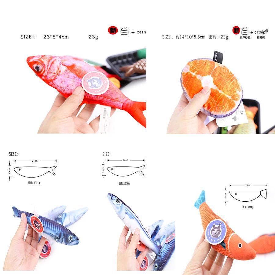 【リアルな魚猫おもちゃ】サンマ、花エンゼルフィッシュ、オレンジのサンマ、双翅目魚、スタースポット魚、赤いシャツの魚、サーモン 7種類の魚ぬいぐるみおもちゃ、3Dプリント技術が本物の魚の姿を完璧にコピーして,見た目はリアルで、猫ちゃんに視覚を刺激し、毎日夢中で遊びできます。とても軽くて投げやすく、咥えて持ってくる。【安全な材質】海水魚のおもちゃの詰め物は、PP綿、響き渡る砂の箱、そして純粋な天然のキャットニップで作られています。 安全で柔らかく弾力があり、猫が欲しがるミント味がします。 やわらかいぬいぐるみ生地が繊細で優しい感じ。【抱枕&爪磨き&噛むおもちゃ】猫ちゃんの抱枕や爪磨きや噛むおもちゃとしてにも大人気です。一点3役あり、猫ちゃんに対して理想的なギフトで。【ストレス解消】猫はキャットニップの香りが好きなので猫ちゃんは大興奮と大喜びの気持ちで遊び放題、運動不足とストレスの解消に役に立ちます!素材構成?pp綿+キャットニップ