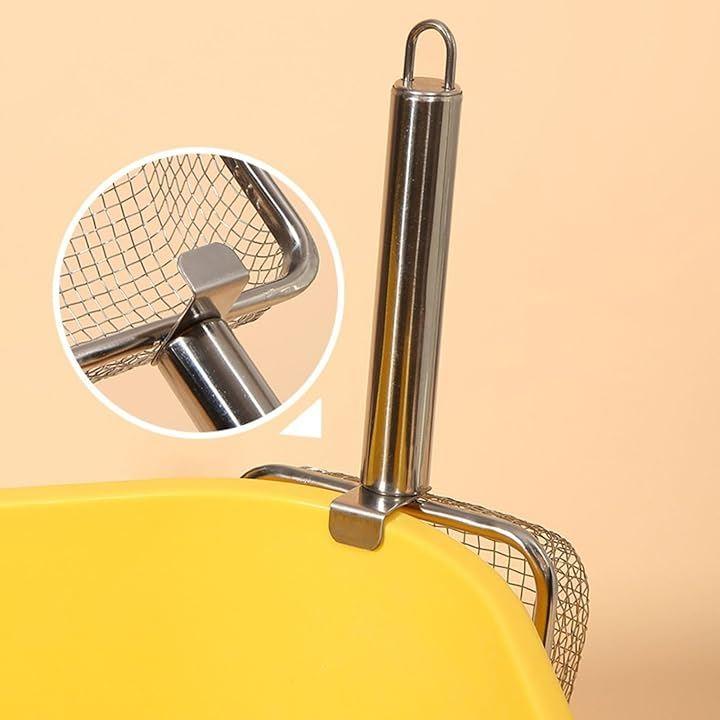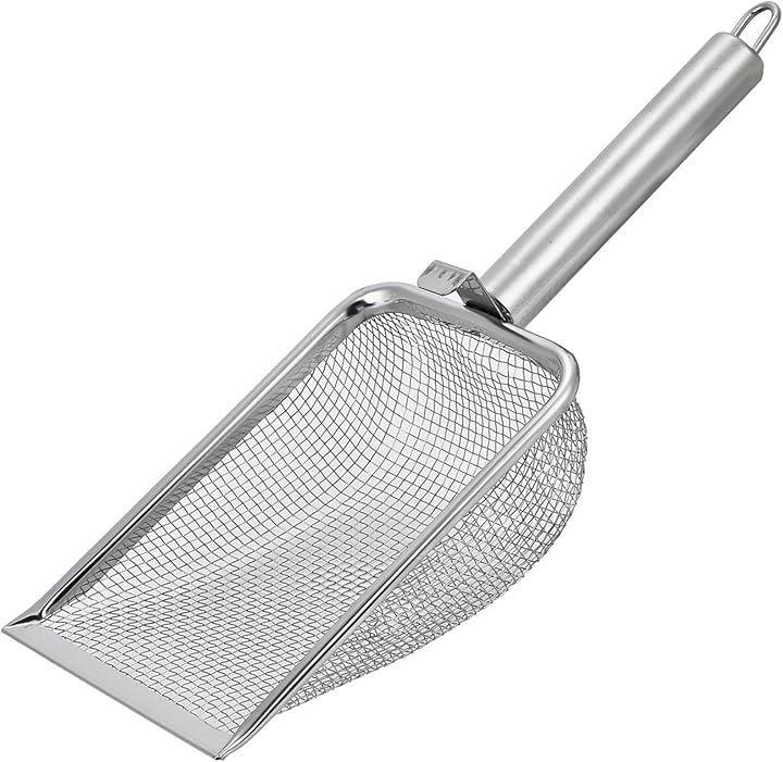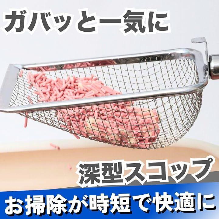 軽量でサビに強い金属製シャベルで、トイレ砂を効率よくふるい分け。