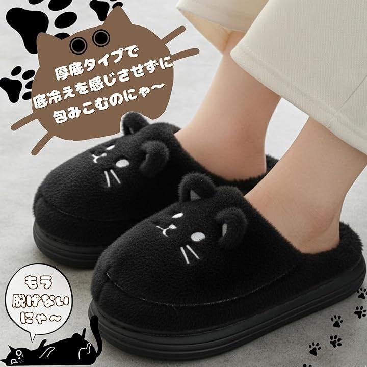 「冬用あったか設計」短毛フリース裏地 x ふわふわファー調アッパーで足先まで包み込み、底冷えしやすいフローリングでも寒さ知らず。