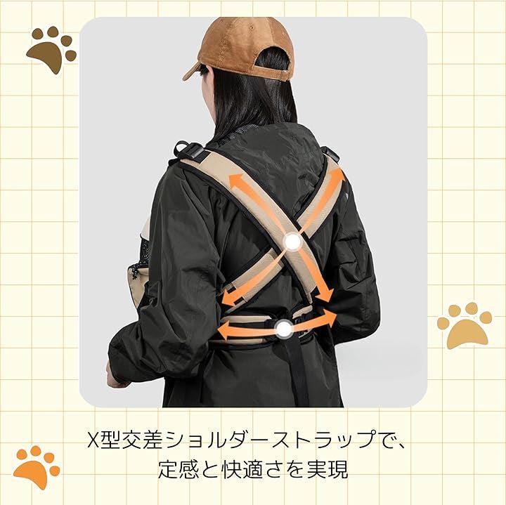 「快適なデザイン」肩と腰への負担を軽減する広いショルダーベルトと調整可能なストラップで、飼い主とペットの快適さを追求しました。