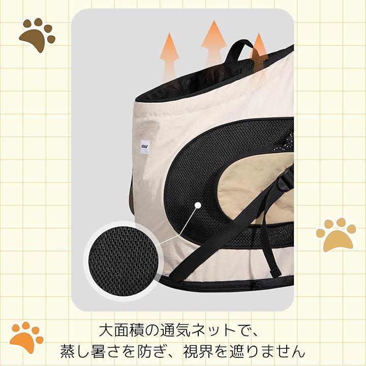 「快適な通気性」このキャリーバッグは、通気性に優れたメッシュ素材を使用しており、ペットが快適に過ごせる環境を提供します。