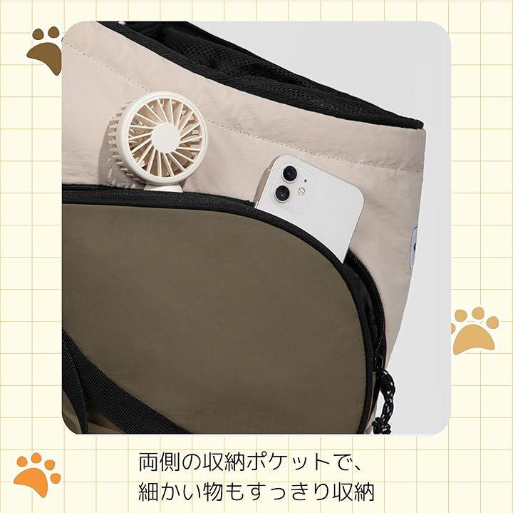 「便利な収納ポケット」バッグには複数のポケットが付いており、ペットのおやつやおもちゃ、飼い主の小物などを整理して収納できます。