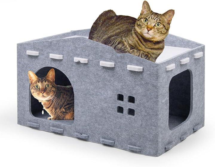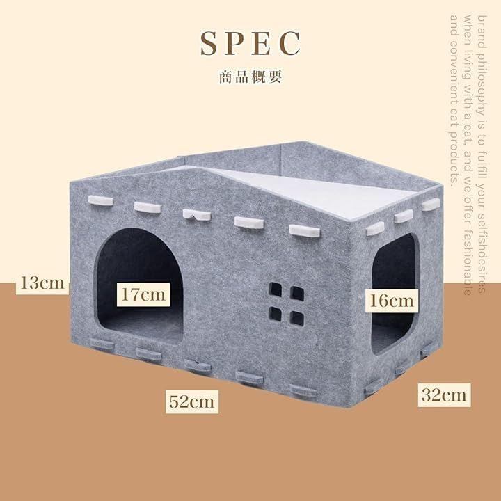 本体サイズ:幅52x奥行32x高さ13cm 入り口2個 窓口付き 第二層耐荷重:20kg 素材:フェルト素材
