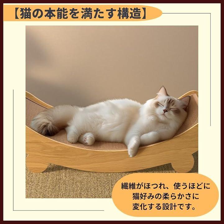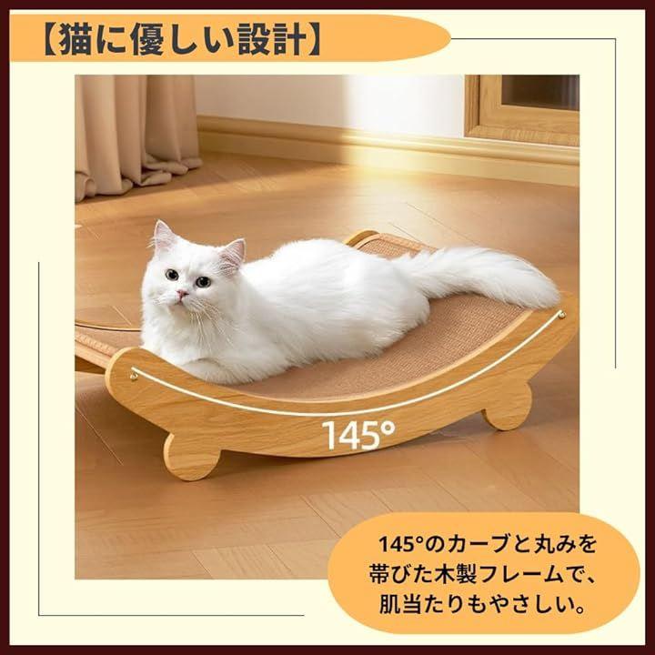 「猫に優しい設計」145°のカーブと丸みを帯びた木製フレームで、肌当たりもやさしい。