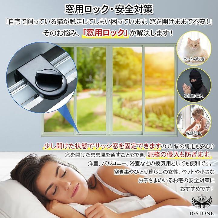 「窓用ロック・安全対策」「自宅で飼っている猫が脱走してしまい困っています、窓を開けままで不安。」そのお悩み、「窓用ロック」が解決します。少し開けた状態でサッシ窓を固定できますので、猫も脱走しにくいですし、洋室、バルコニー、浴室などの換気用としても便利です。