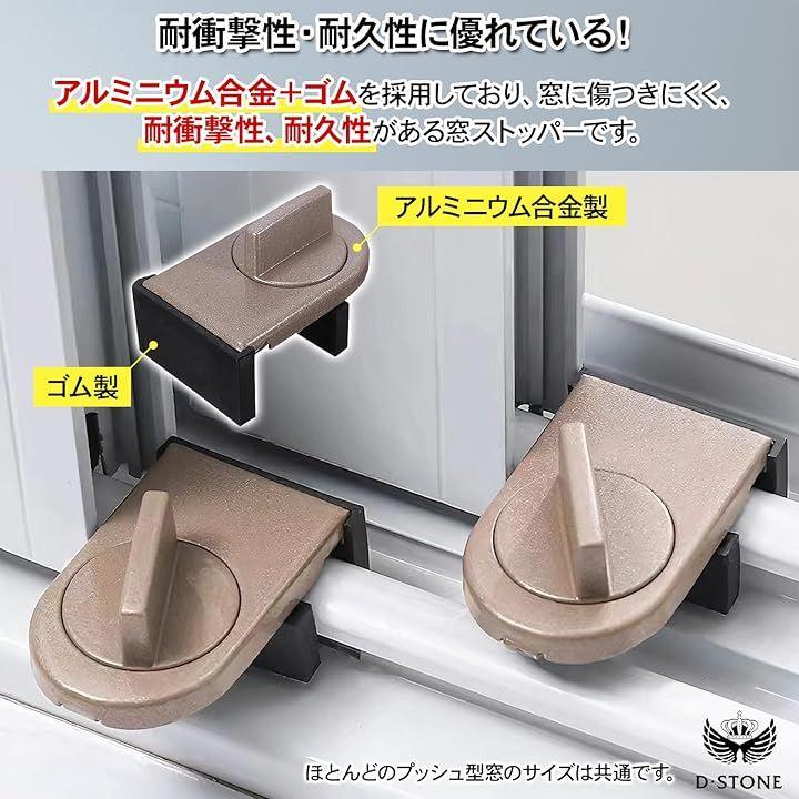 「耐衝撃性・耐久性に優れ」アルミニウム合金+ゴムを採用しており、窓に傷つきにくく、耐衝撃性、耐久性があるの窓ストッパー。