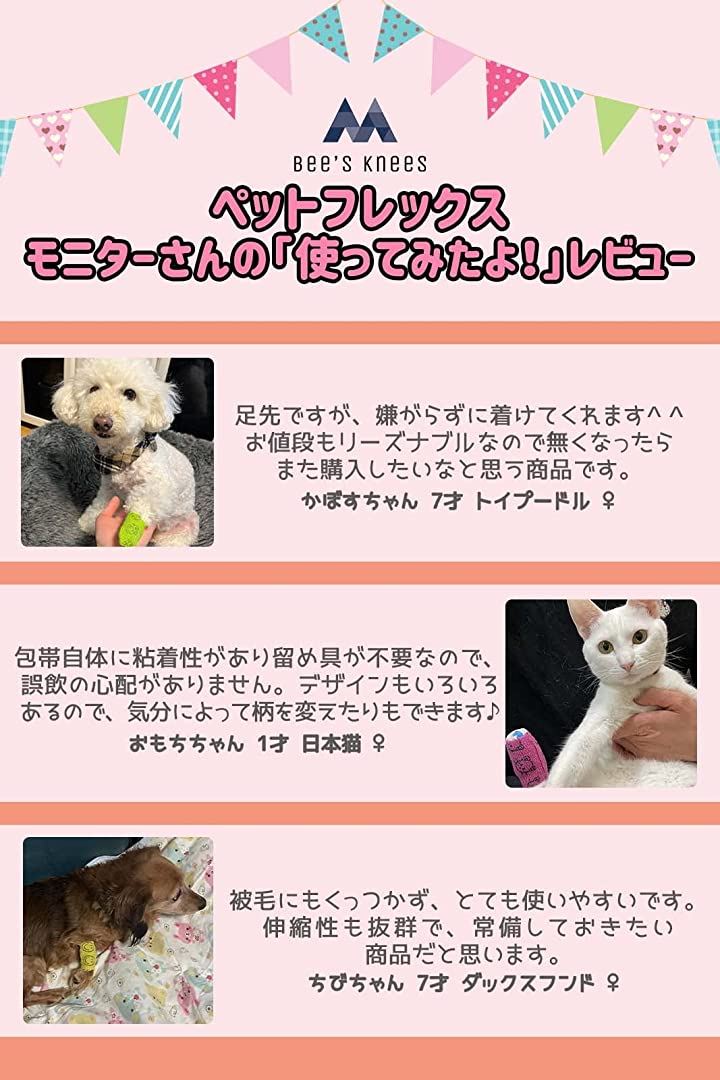 フレックステープはまず見た目がとても可愛いく、ただの包帯を巻くよりもデザインが素敵なので包帯を巻くという可哀想なマイナスなイメージが軽減されて飼い主の気持ちも和らぎます(^ ^)