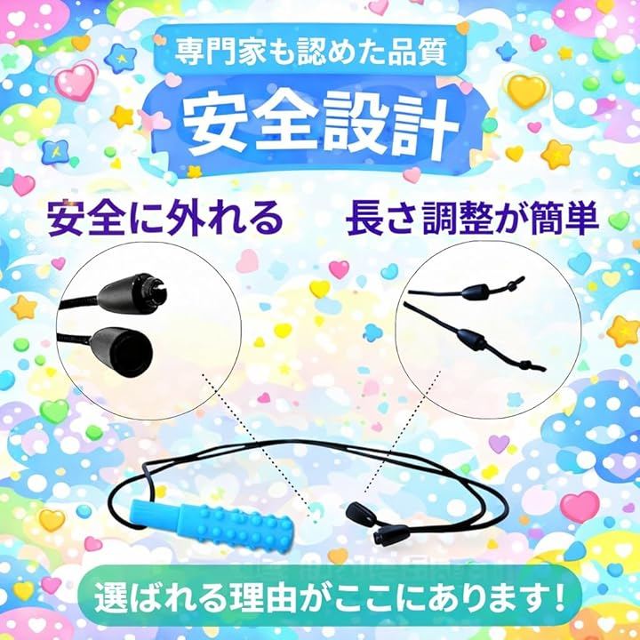 安全第一 - 噛み応えのあるネックレス(スティック)感覚は100%食品用のシリコンで作られており、安全で耐久性があります。