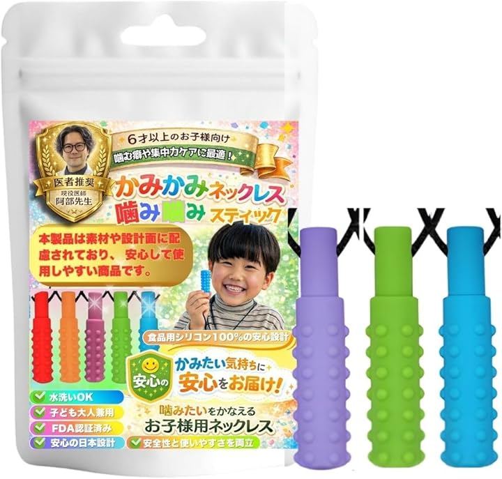 最愛のお子様のための信頼できる、自閉症用噛み噛みおもちゃネックレスです。