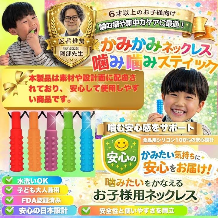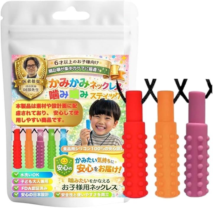 最愛のお子様のための信頼できる、自閉症用噛み噛みおもちゃネックレスです。