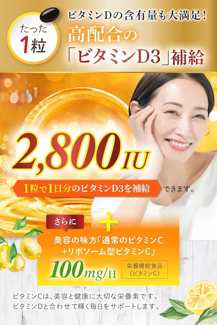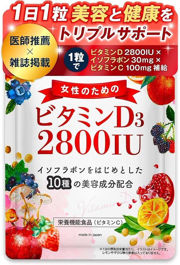 ビタミンD3にビタミンCとイソフラボンおよび10種の美容成分を配合した新発想のサプリです。