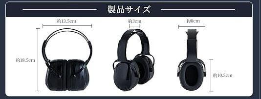 イヤーマフサイズ:高さ18.5cm x 横13.5cm x 幅8.0cm。