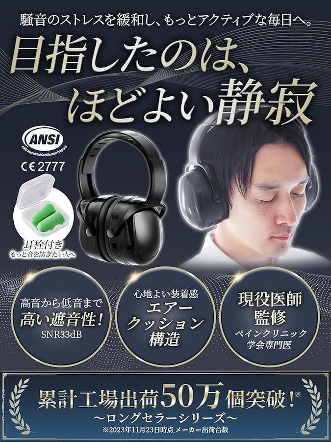 「現役医師監修」国内の医師監修により安心して使用できる防音のイヤーマフ。