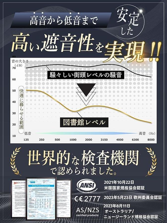 「7層マルチレイヤーを搭載」遮音効果を高める多層構造により、高音域から低音域までの広い音域をカバー。