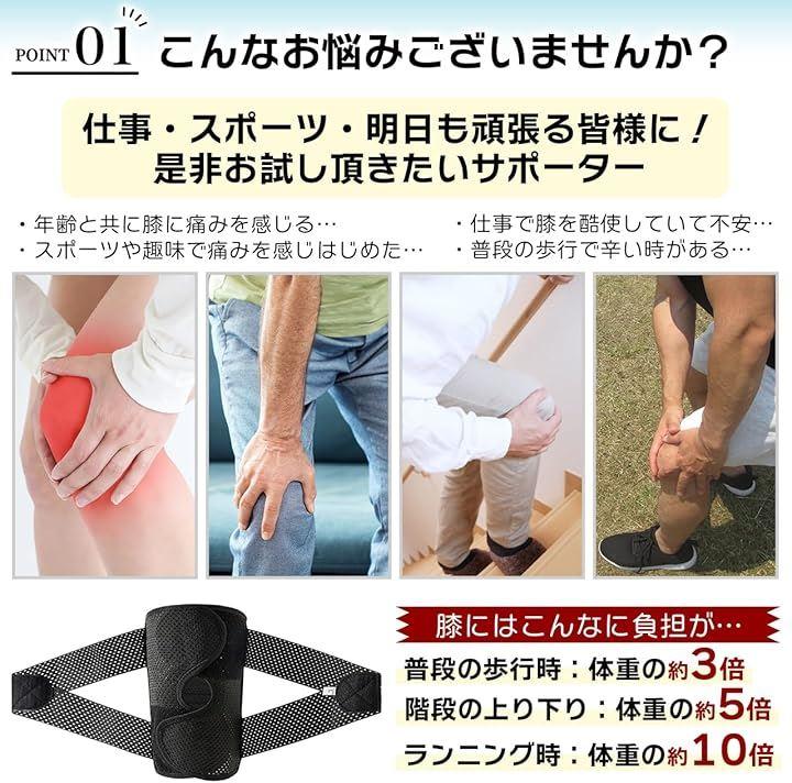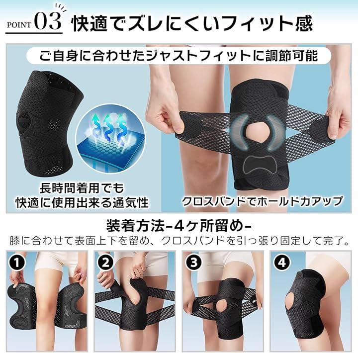 「男女兼用で大人から子供まで着用可能」左右2本のV字ベルトで膝を360度しっかり固定する二重加圧式を採用。