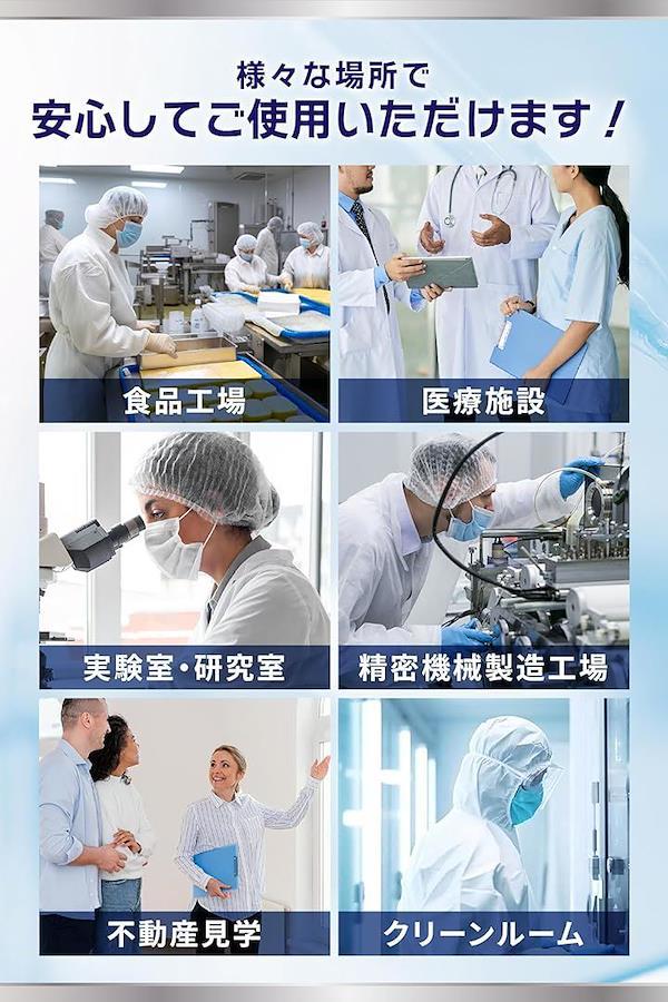 食品加工業 クリーンルーム 電子産業 介護 医療機関など様々な用途・職種の方に多くのご利用をいただいております。