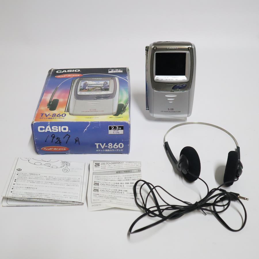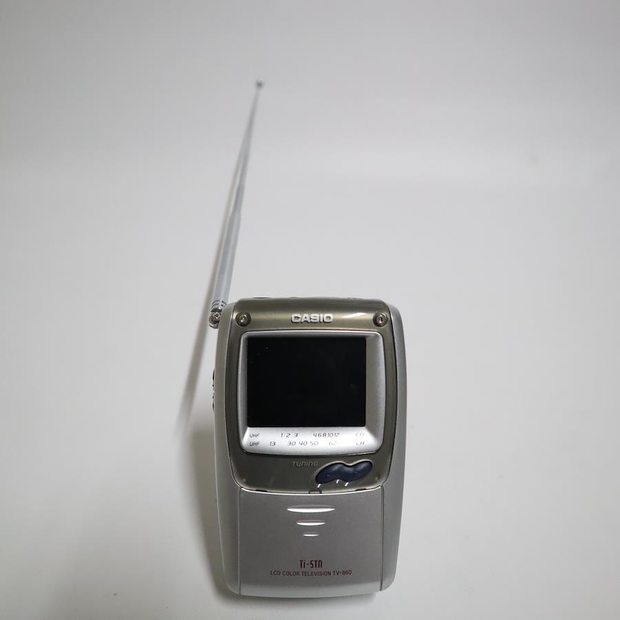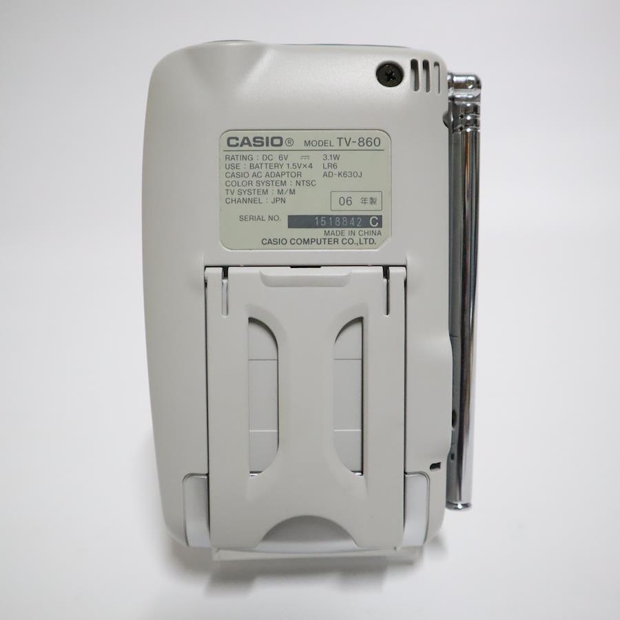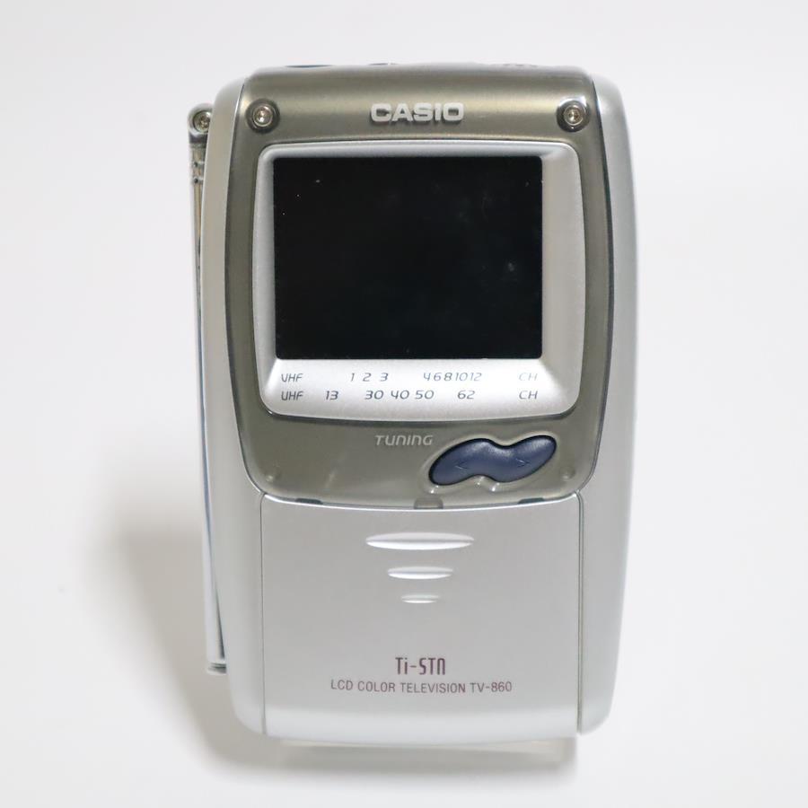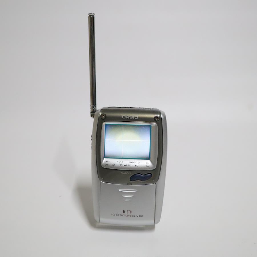 コレクション用途として人気のあるCASIOポータブル液晶テレビ「TV-860」です。通電確認済みで画面点灯を確認しています。アナログ放送終了のため受信はできませんが、当時物としての動作品を探しているコレクターの方におすすめです。