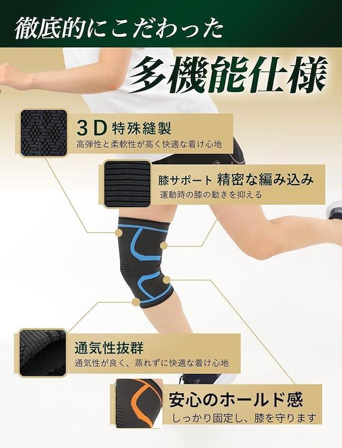 「徹底的にこだわった多機能品質」この膝サポーターは、3D特殊加工による高い弾性と柔軟性を備えており、膝に快適にフィットします。