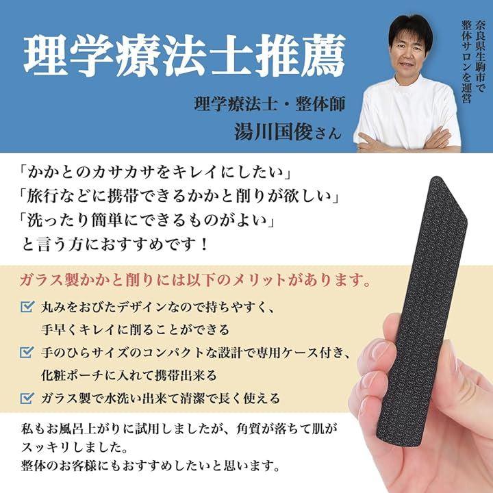「理学療法士おすすめ」軽い力でこするだけ。ガラス製かかと削りで簡単にかかと角質ケア。古い角質を除去してツルスベの肌に仕上がります。