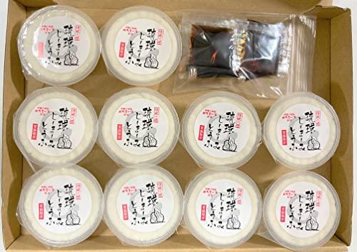 【内容量】63g×10個【名称】落花生加工品(たれ付き)【栄養成分表1食当たり(ジーマーミ豆腐63g、たれ5g)】エネルギー:139kcal、たんぱく質:5.9g、脂質:10.5g、炭水化物:5.2g、食塩相当量:0.2g【原材料】【じーまーみーとうふ】落花生(輸入、塩(ぬちまーす)/増粘剤(加工でん粉=タピオカ)【たれ】醤油(本醸造)、砂糖(原材料の一部に生姜、大豆を含む)※ジーマミー=地豆=ピーナッツ(落花生)です。【保存方法】直射日光を避け、常温で保存して下さい。【賞味期限】 製造から90日 保存料等一切使っておりませんので、開封後はお早目にお召上りください。【じーまーみー豆腐とは】落花生(ピーナッツ)を使った沖縄県の郷土料理。ジーマーミ(漢字では「地豆」)は琉球語で落花生を意味し、地域によってジーマミー(ヂーマミー)などとも言う。名前に「豆腐」と入っているが、大豆の加工品ではなく、落花生の絞り汁に芋くず(さつまいもデンプン)を加えてつくる。胡麻豆腐の胡麻をピーナッツに、葛粉を芋くずに置き換えたような食品である。胡麻豆腐同様にもちもちとした食感である。【重要】メーカーによる商品リニューアルに伴いパッケージ(内容量も含む)変更が行われた場合、新パッケージでお届け致します事ご了承願います。