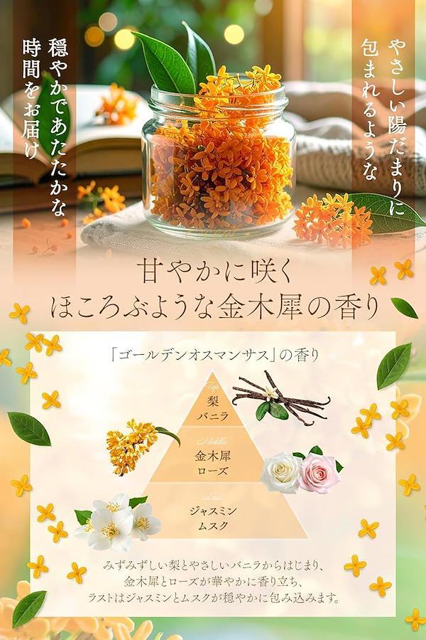 「甘やかに咲くほころぶような金木犀の香り」やわらかな甘さと奥行きのある香調が、まるで金木犀が風に揺れてふわりと香るように広がります。