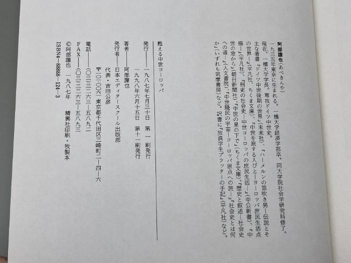商品名:甦る中世ヨーロッパ 阿部謹也 日本エディタースクール出版部