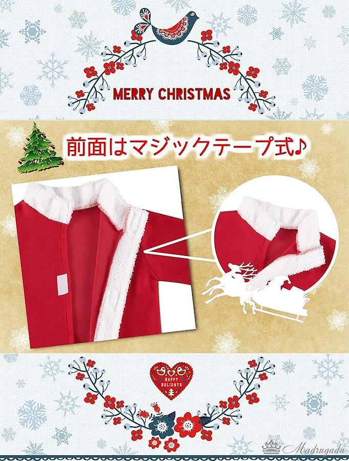 お子様をより可愛らしく演出するふわふわ柔らかな生地のサンタクロース衣装セット。
