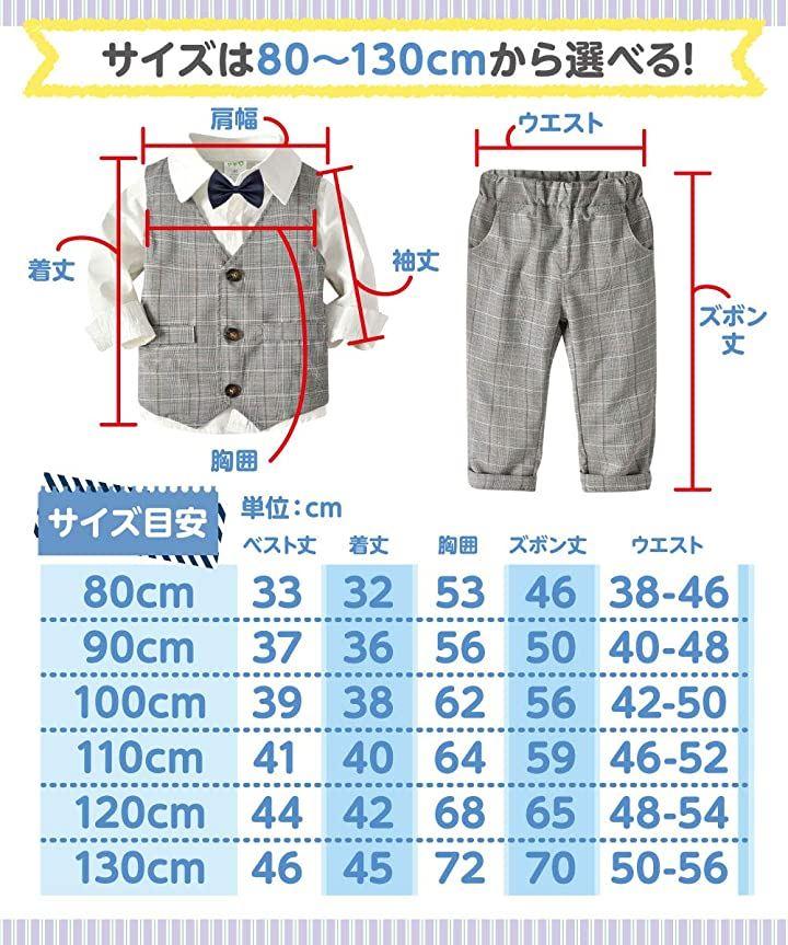 80ベスト丈33cm着丈32cm胸囲53cmズボン丈46cmウェスト38~46cm