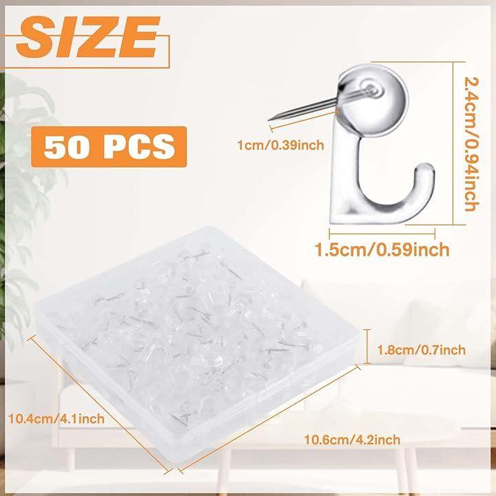 パッケージ内容:透明なプラスチック製のプッシュピンフック50個で、日常の使用と交換に十分です。