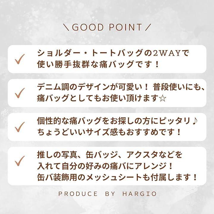 イミテーションデニムのデザインが可愛い痛バッグ です。