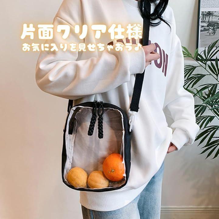 片面が透明でぬいぐるみがよく見えるクリア仕様のショルダーバッグです。