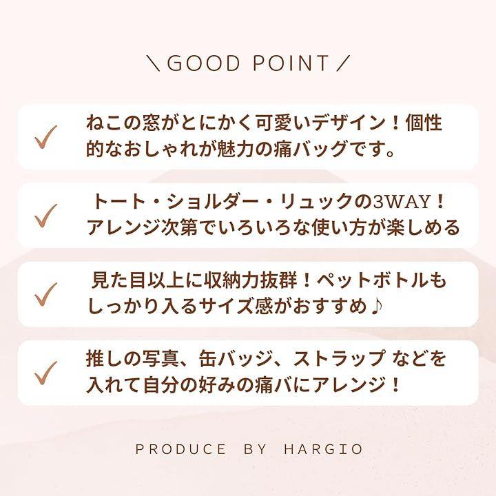 こだわりを詰め込んだ、HARGIOオリジナルの痛バッグが出来ました。 クリア部分がねこのデザインになっている可愛い痛バッグです。