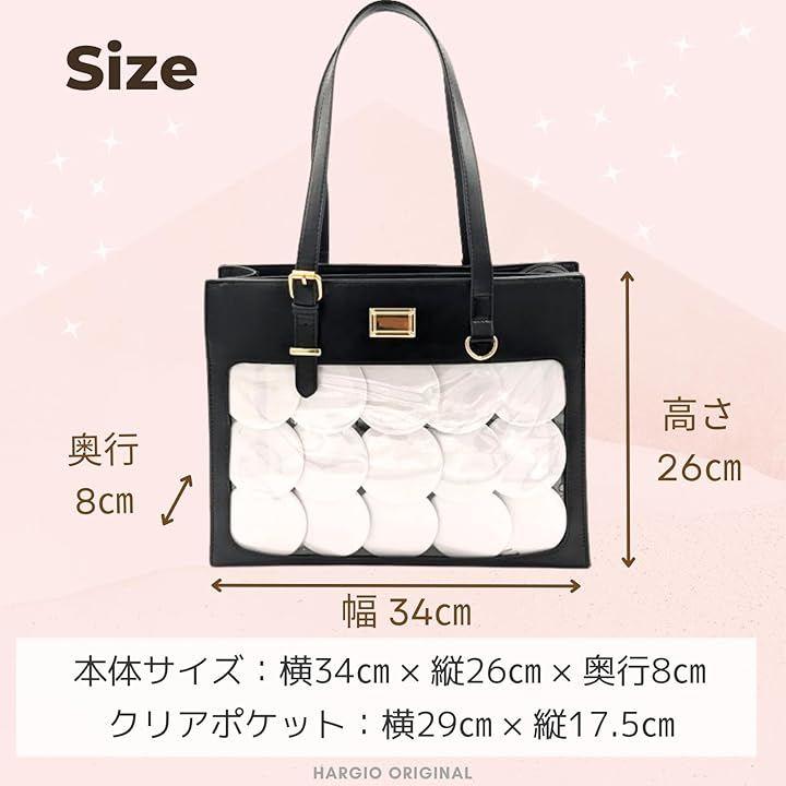 素材:PUレザー・PVC サイズ:横 34cmx縦 26cmx厚さ 8cm クリアポケット:横 29cmx縦 17.5cm