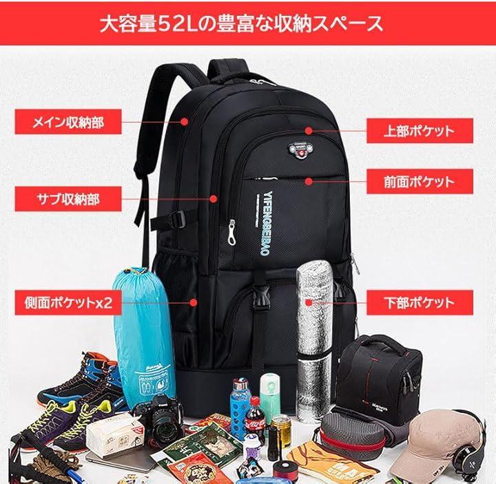 「最大65リットルに拡張可能なの大容量構造」 調節可能なストラップやベルト、多数のポケットがあり、大小さまざまな荷物を収納可能です。