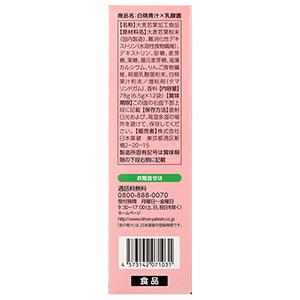 大麦若葉粉末(国内製造)、難消化性デキストリン(水溶性食物繊維)、デキストリン、砂糖、麦芽糖、果糖、還元麦芽糖、海藻カルシウム、りんご食物繊維、殺菌乳酸菌粉末、白桃果汁粉末/増粘剤(タマリンドガム)、香料