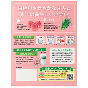 商品概要:さわやかな白桃の風味がふわっと広がる、フルーティな青汁です。