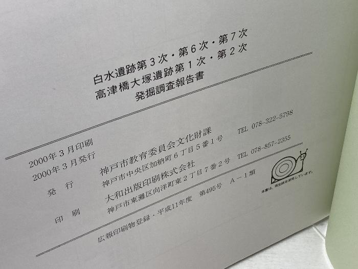 商品名:白水遺跡第3・6・7次 高津橋大塚遺跡第1・2次発掘調査報告書 神戸市教育委員会