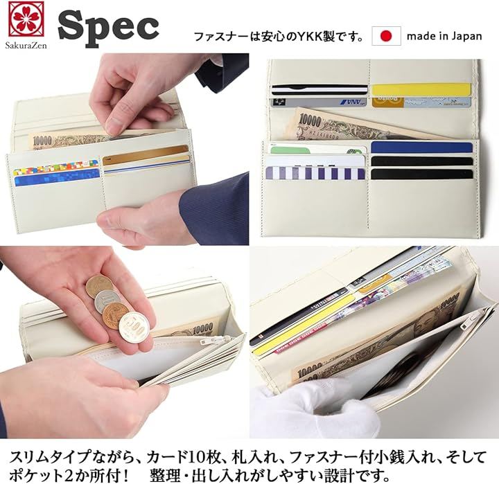 「 スペック 」札入x1・カード入x10・ファスナーポケットx1・ポケットx2 、SIZE:(約)横19x縦9xマチ2cm、素材:(外面)錦蛇革(中面)YKKファスナー使用、日本製、レディース・メンズ長財布