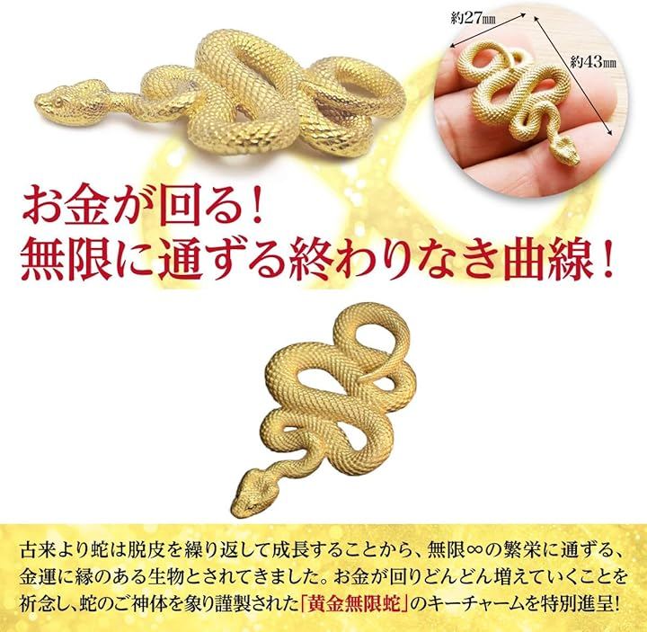 「金運アップのオプション付き」財神白蛇のご神体をデザインしたオリジナル黄金蛇チャームや金運根付、招金黄金札など、金運アップにかかせない豪華オリジナル品がセットされております。