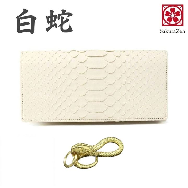 「 縁起の良い金運財布 」古来より金運と芸術の神「弁財天」様の使いとされる「白蛇」をモティーフにデザインされた、ファッション性と金運アップを狙った本革金運財布です。