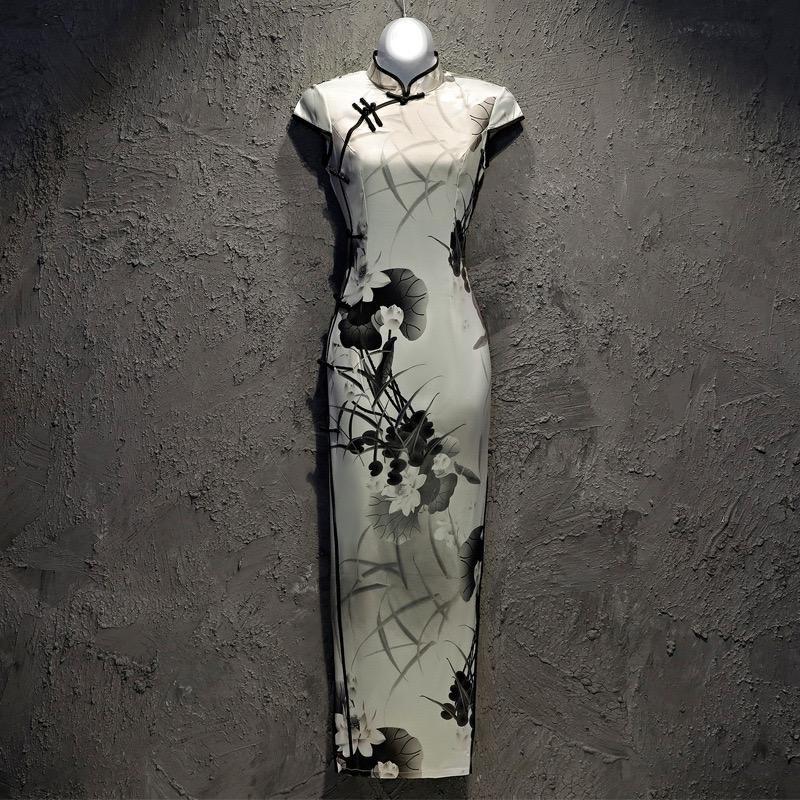 ・柄の出方は商品毎に異なります。・裏地あり・ストレッチなし・胸パッドなし・透けません・首元チャイナボタン開閉不可・着用しやすい背中ファスナー・ホワイト色・素材:ポリエステル