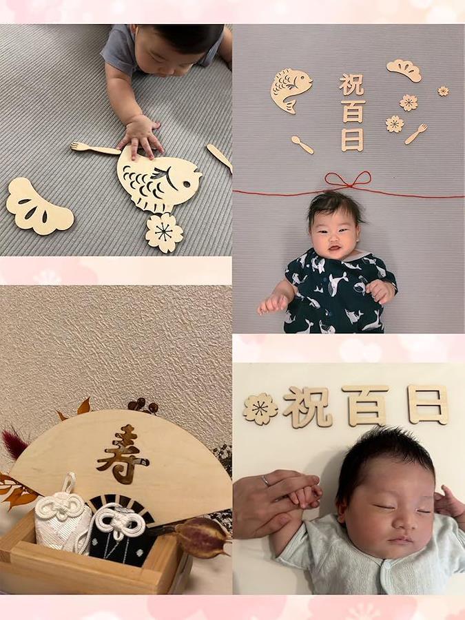 100日祝いやハーフバースデーなど、成長の節目を彩る木製プレートで、心に残る記念写真を演出します。