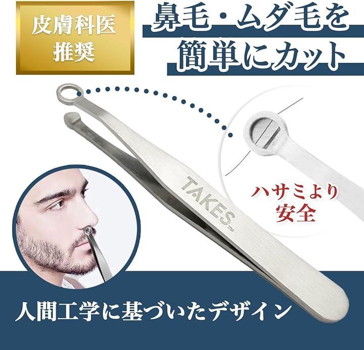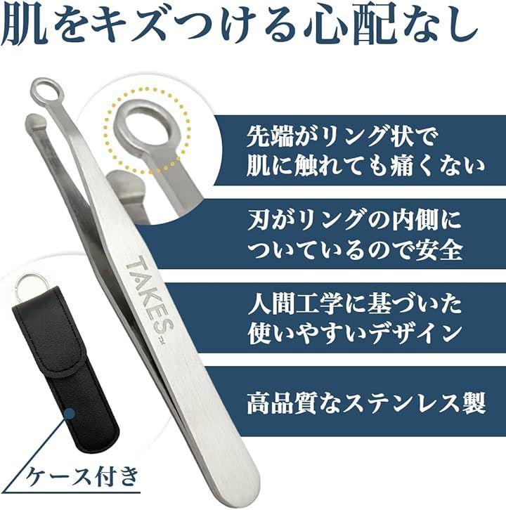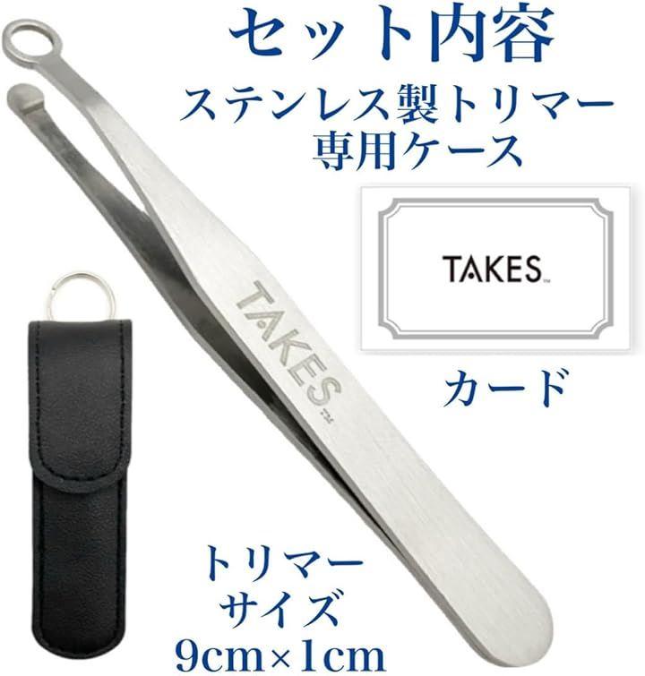 「セット内容」ステンレス製はな毛トリマー(サイズ:9cmx1cm)、専用携帯ケース、TAKESブランドカード付き。