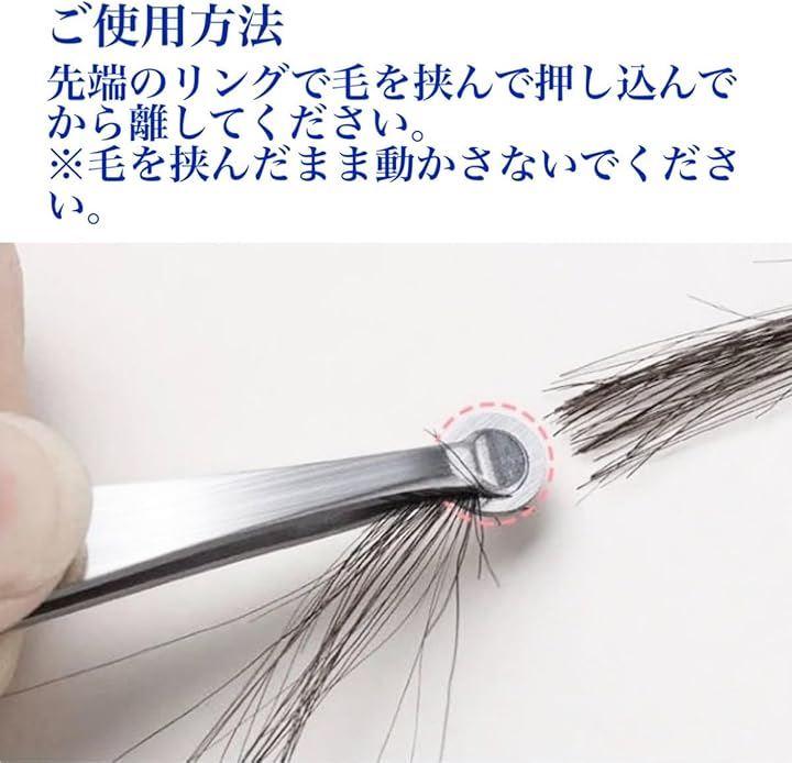 「ご使用方法」ピンセットのように、はなげカッター先端のリングで毛を挟んで押し込んでから離してください。