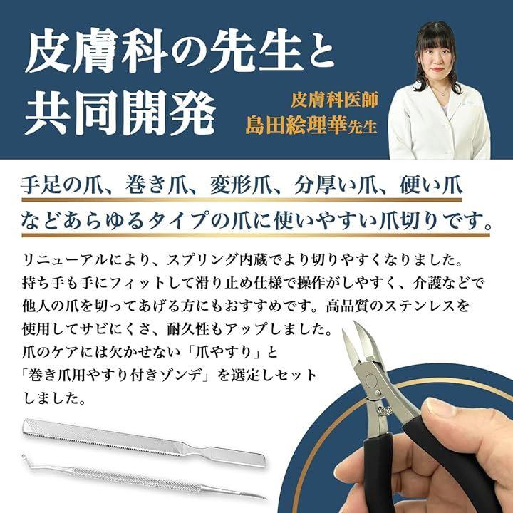 「皮膚科の先生監修のつめきりがリニューアル」巻き爪、変形爪、分厚い爪、硬い爪など切りにくかった爪をキレイにカットできます。