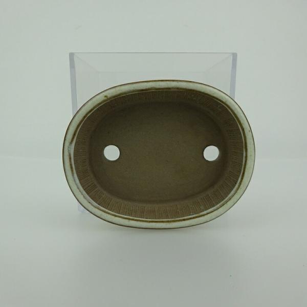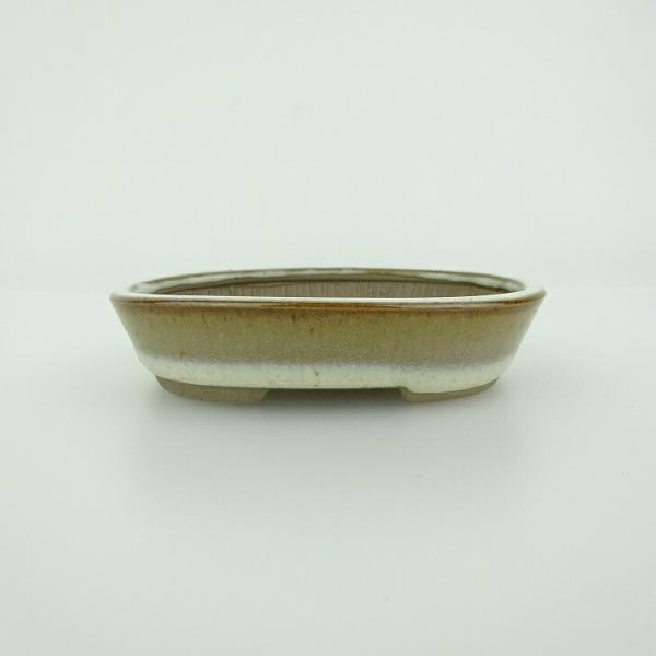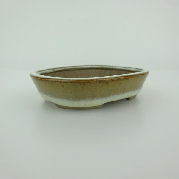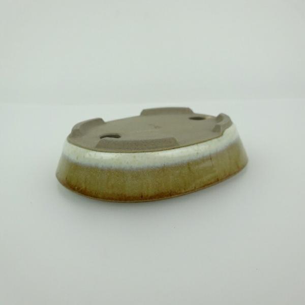 Bonsai pot, small, blue-tinted, approximately 8.2cm long, oval, glazed, actual item