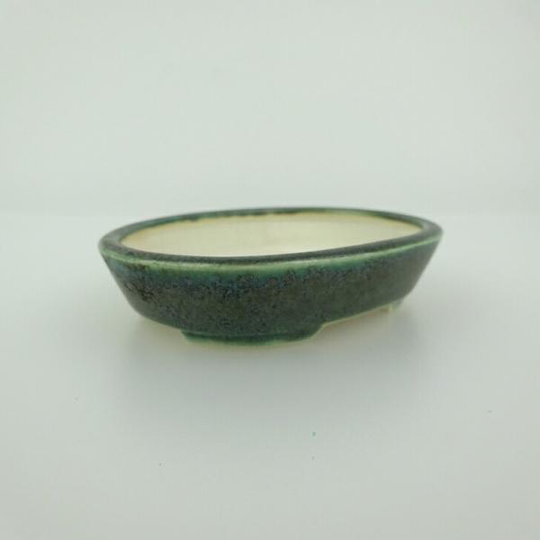 Bonsai pot, small, blue-scented, approximately 8.4cm long, oval, glazed, actual item