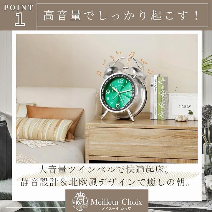 「高音量でしっかり起こす。」 ツインベルと金属ハンマーを採用した大音量設計で、深い眠りの方でもしっかり起床できます。